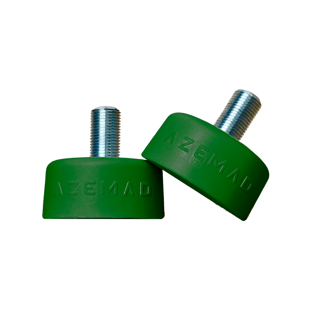 Los frenos AZEMAD para patines han sido diseñados para ofrecer al patinador un buen agarre y capacidad de respuesta en la frenada, y han sido desarrollados tras cuidadosas pruebas y elección de materiales que proporcionan al patinador seguridad y eficacia. Los frenos son esenciales para el control del patinaje, ya que favorecen otros aspectos además de su función principal, y son igualmente importantes para los ritmos de velocidad, la propulsión en la salida y para realizar cambios de dirección. Con la elección de los materiales y las características de los frenos, los frenos AZEMAD favorecen el arranque instantáneo y el frenado en distancias cortas.
